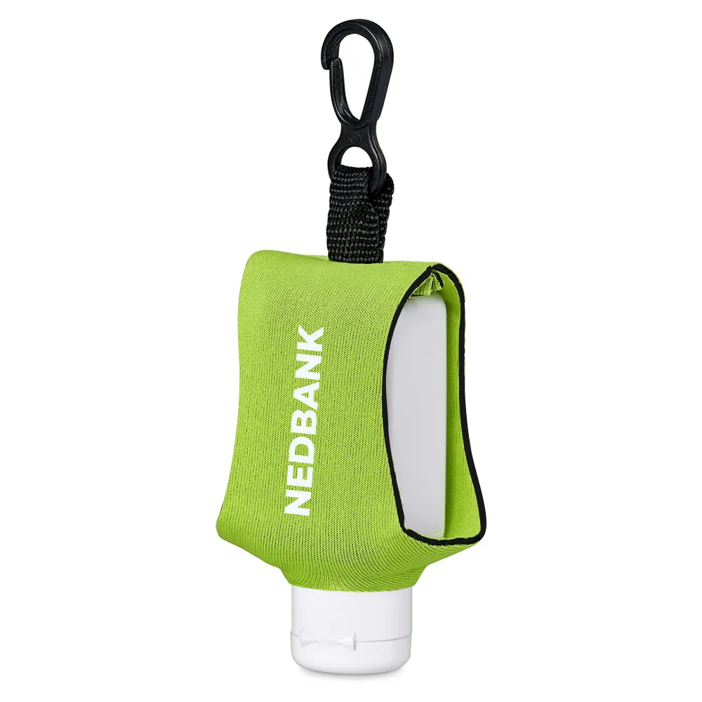 Material: Clear bottle with white lid | Neoprene pouch