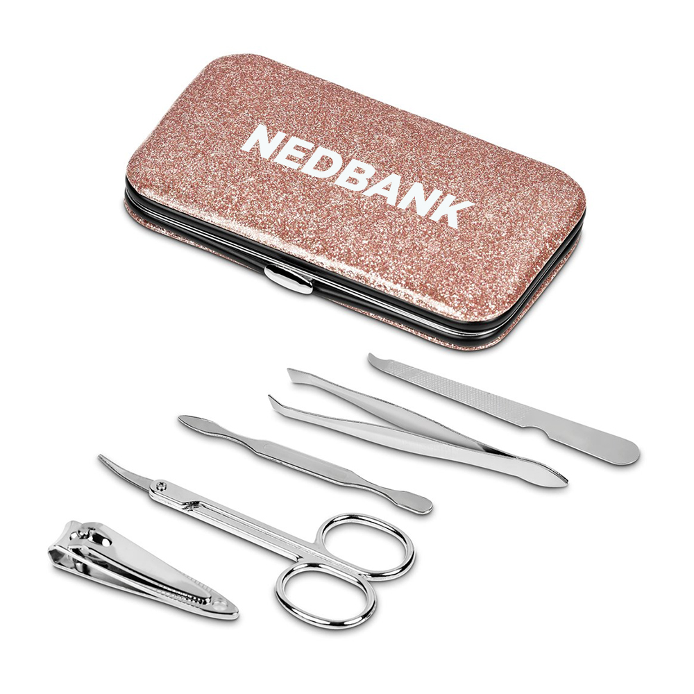 Includes nail clippers, nail scissors, tweezer, cuticle pusher, and nail file