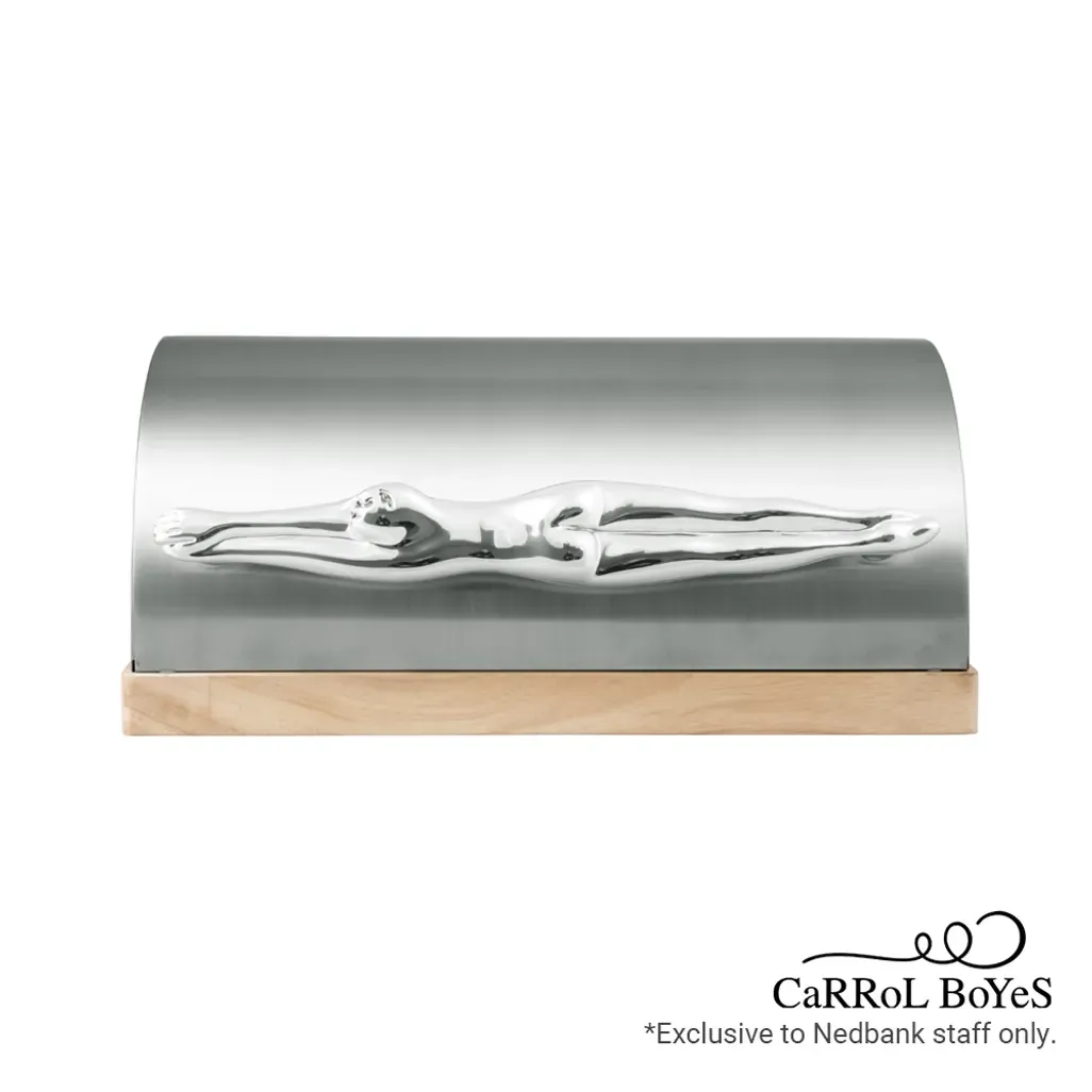 Carrol Boyes Bread Bin – Diver is a statement piece that beautifully blends function and art. Crafted from high-quality rubberwood, it features a unique Diver design from the iconic Carrol Boyes collection. With precision air holes at the back to promote airflow, this bread bin keeps your bread fresh while adding an elegant touch to any kitchen.