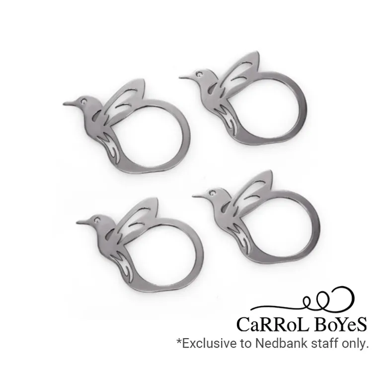 Add a touch of charm and elegance to your table setting with the Carrol Boyes Napkin Ring Set Holder. Crafted from laser-cut stainless steel, these dining accessories are both practical and decorative. The quirky bird design brings a playful, nature-inspired element to any dining occasion.